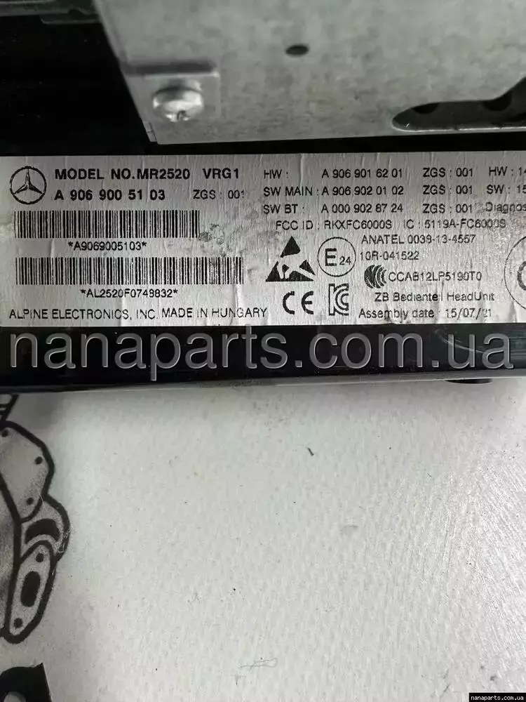 Автомагнитола Mercedes Sprinter 906 (06-...), A9069005103, 9069005103