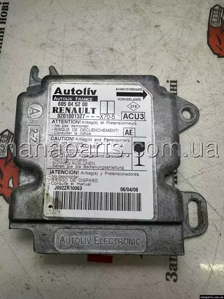 Блок управления Airbag Renault Master 2, Рено Мастер (2003-2010) Опель Мовано (2003-2010), 2.5 дки Opel Movano, Nissan Interstar &